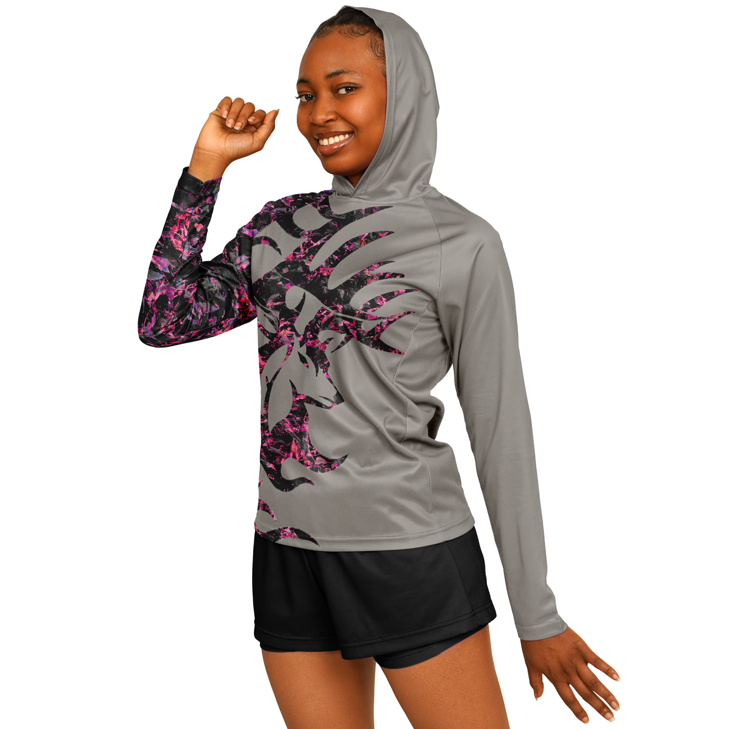 Each Women’s Long Sleeve Hooded Performance Shirt is made to order, ensuring quality and precision in every stitch.